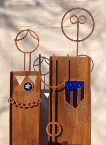Welded steel and fused glass.
