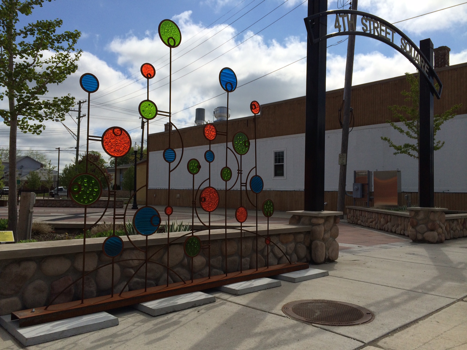 Welded steel and fused glass.