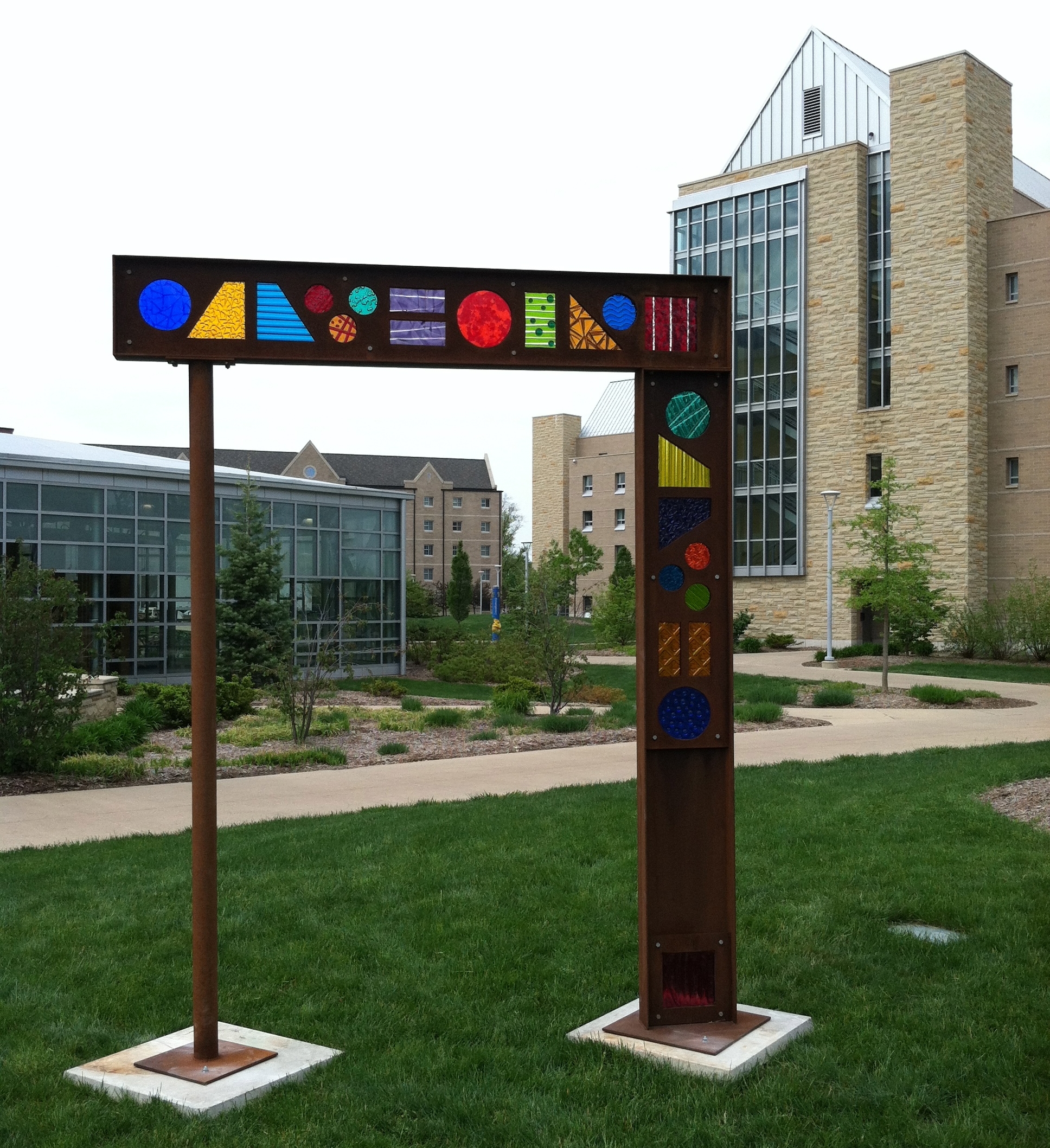 Welded steel and fused glass.